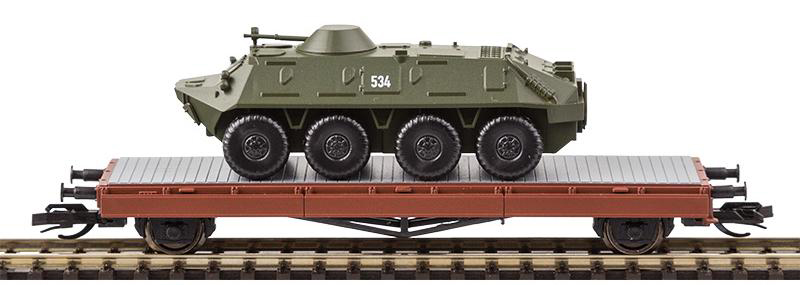| plošinový vůz hnědý s nákladem bojového vozidla SPW60PB |