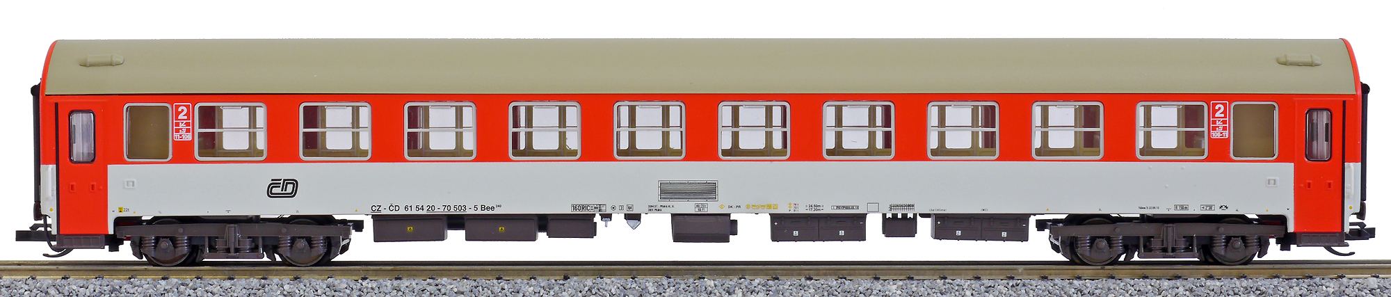 | rychlíkový vůz červený-bílý s šedou střechou 2. tř. |