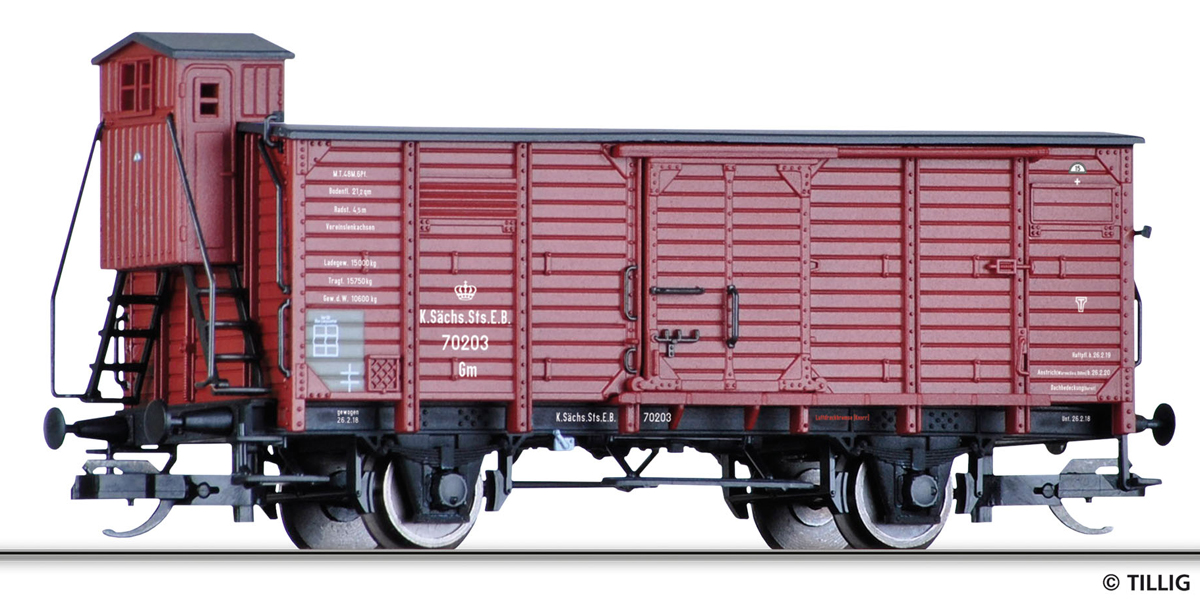 krytý nákladní vůz červenohnědý s brzdařskou budkou
