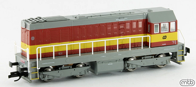 Popis   dieselová lokomotiva červená s výstražným pruhem, šedá střecha, rám a pojezd
