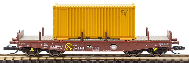 | plošinový vůz hnědý s nákladem kontejneru 20' |