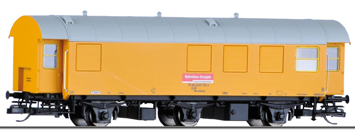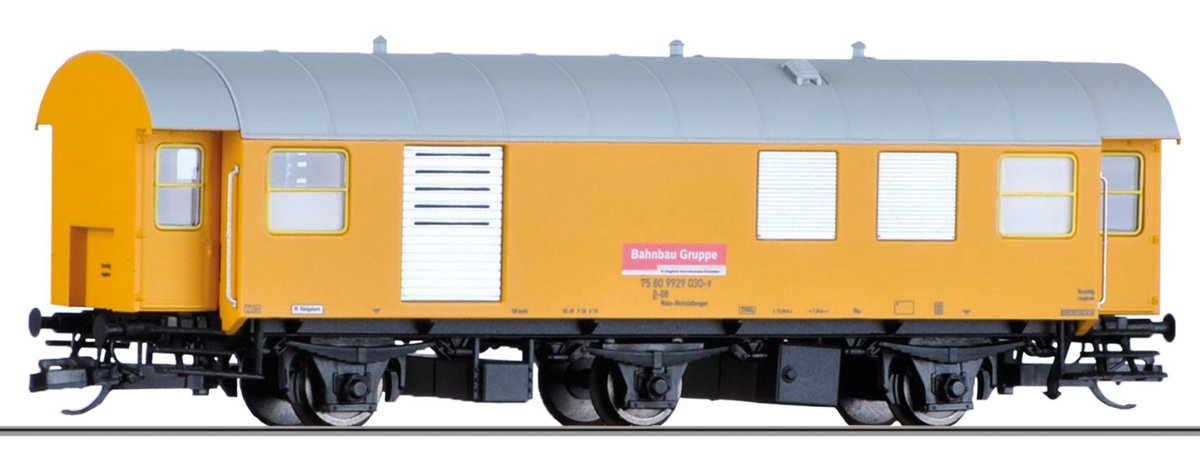 | obytný-spací vůz do pracovního vlaku žlutý s šedou střechou |