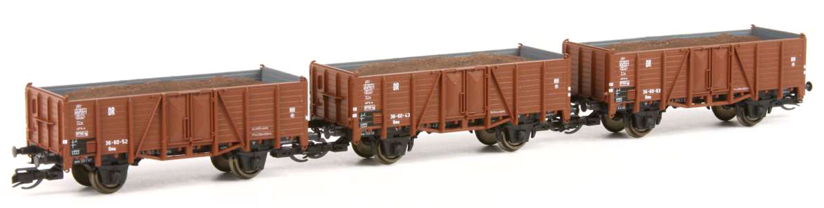 | set tří nákladních otevřených vozů s nákladem uhlí |