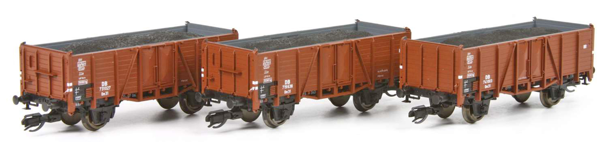 | set tří nákladních otevřených vozů s nákladem uhlí |