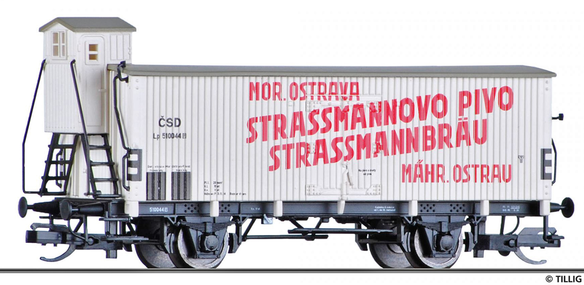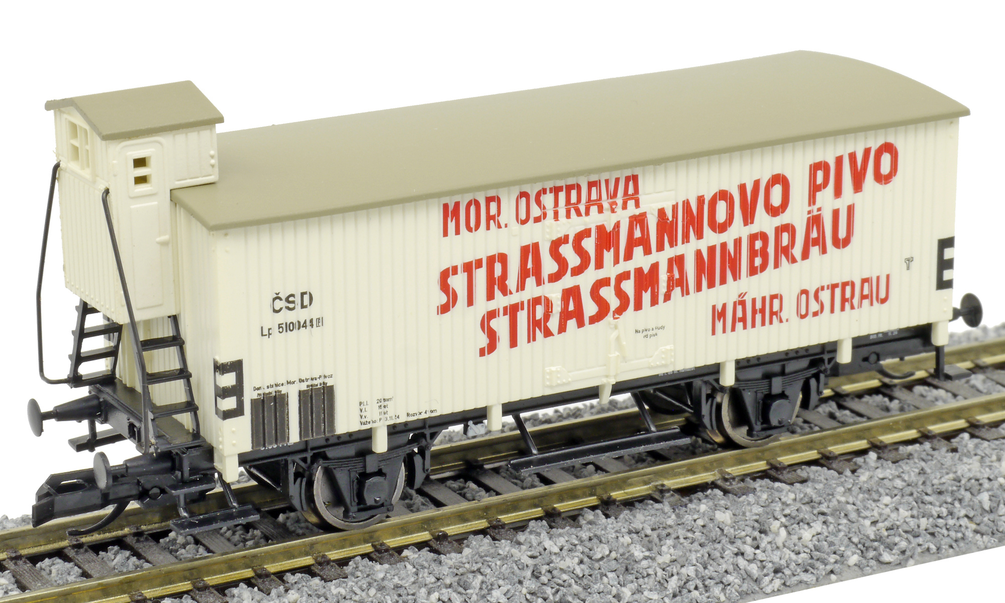 | chladicí vůz bílý s šedou střechou „Strassmannbräu Mährisch Ostrau“ |