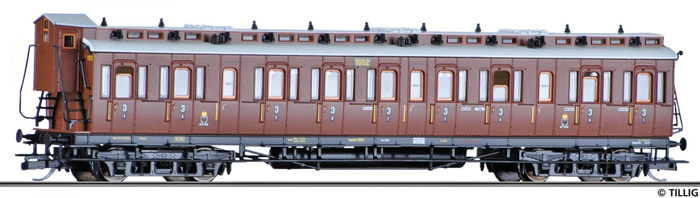 | oddílový osobní vůz červenohnědý s brzdařskou budkou 3. tř. |