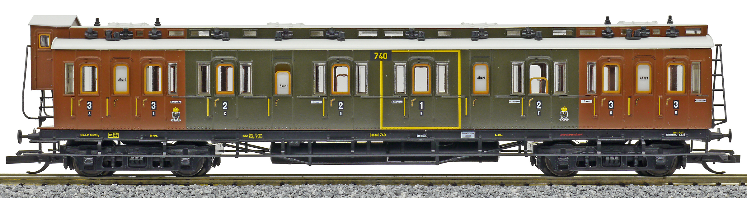 | oddílový osobní vůz tmavě zelený-červenohnědý 1./2./3. tř. |