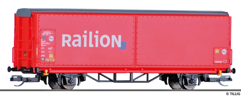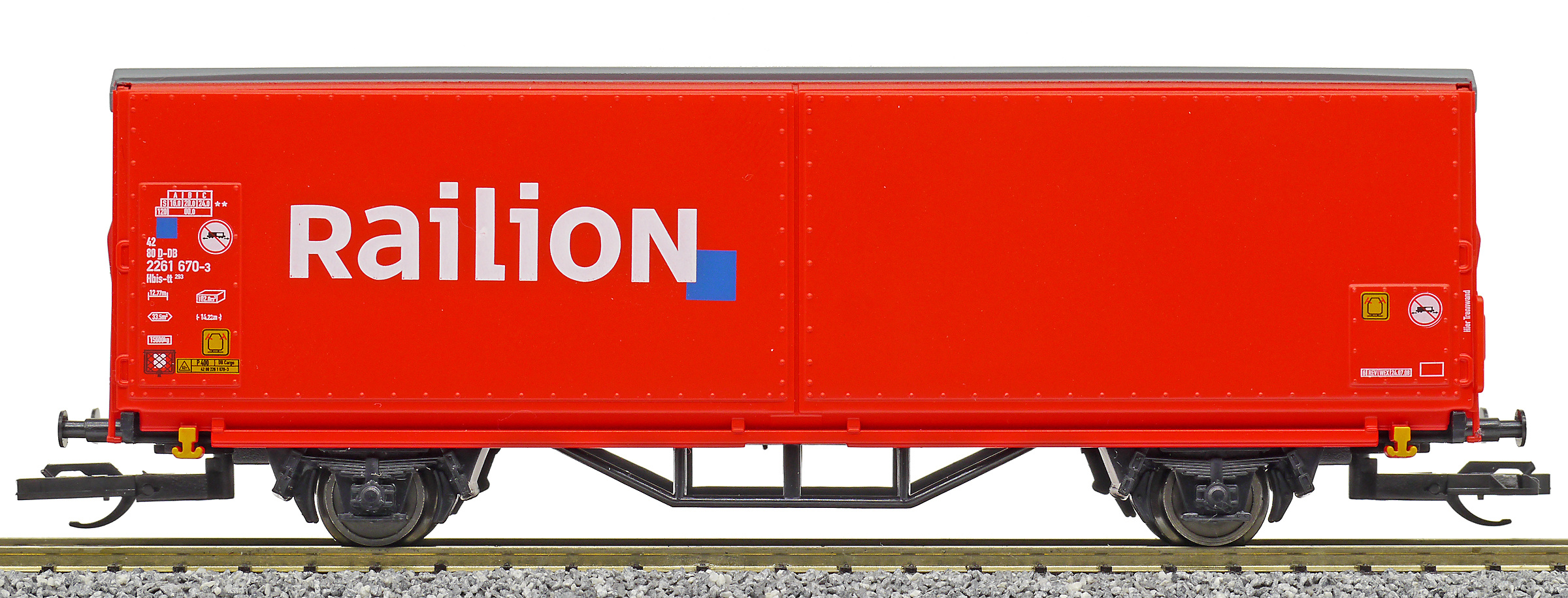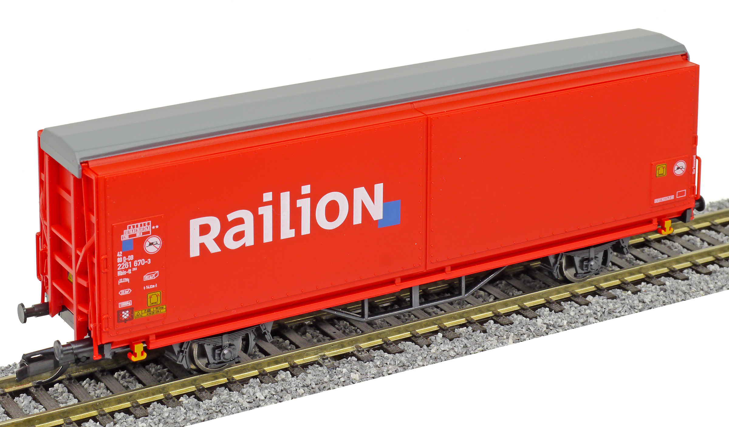 | nákladní vůz s posuvnými bočnicemi červený „Railion“ |