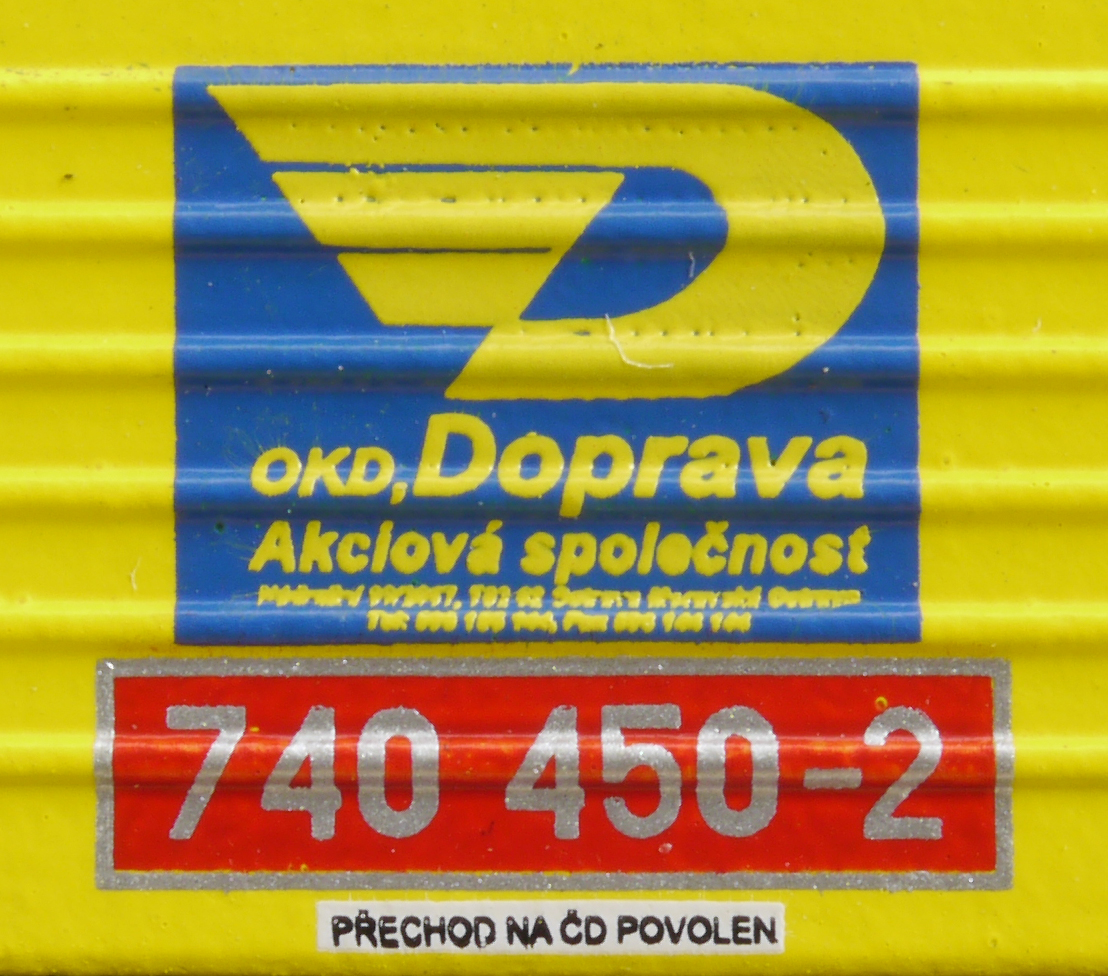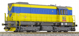 | dieselová lokomotiva v barevném schematu „OKD Doprava a.s.“ |