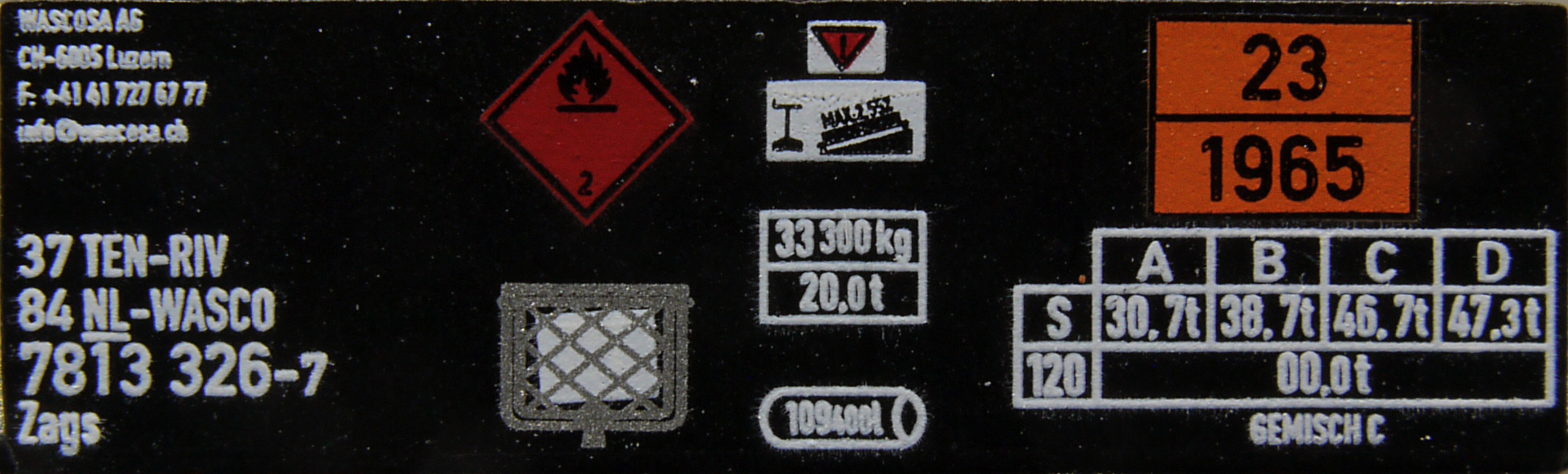| • Zags | - | kotlový vůz (cisterny) s kovovou nádrží, pro přepravu tekutých nebo plynných produktů |