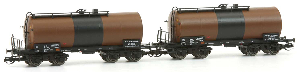 | set dvou kotlových vozů hnědých a černým pásem |