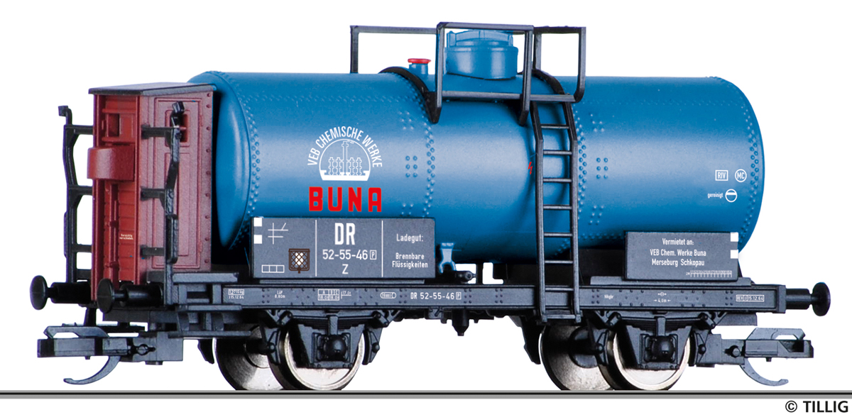 | kotlový vůz modrý s logem „VEB Chemische Werke Buna“ |