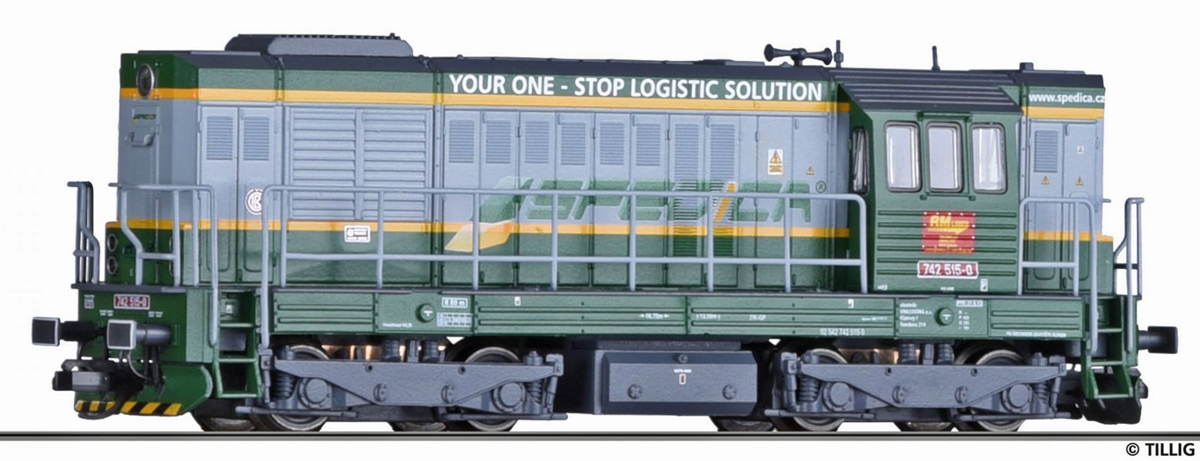 | dieselová lokomotiva v barevném schematu „RM Lines a.s. (CZ) / SPEDICA“ |