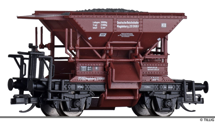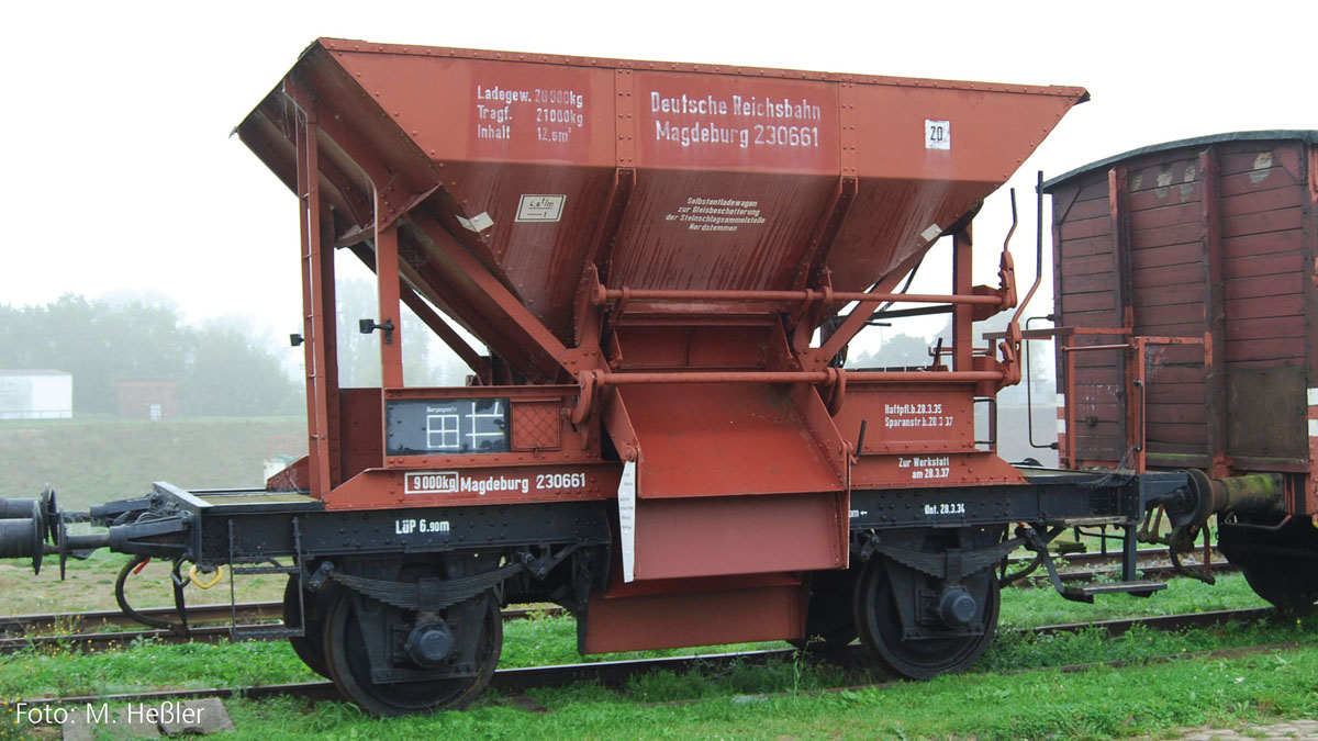 | samovýsypný nákladní vůz červenohnědý muzeální „Magdeburger Eisenbahnfreunde e.V.“ |