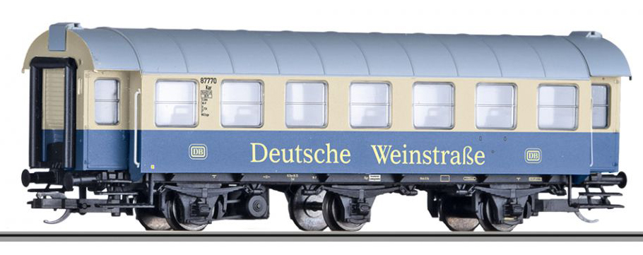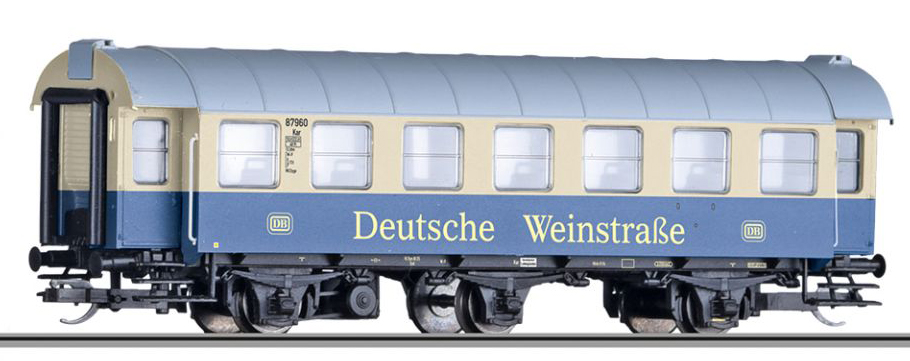 Popis   osobní vůz modrý-slonová kost s šedou střechou 2. tř. „Deutsche Weinstraße 1“