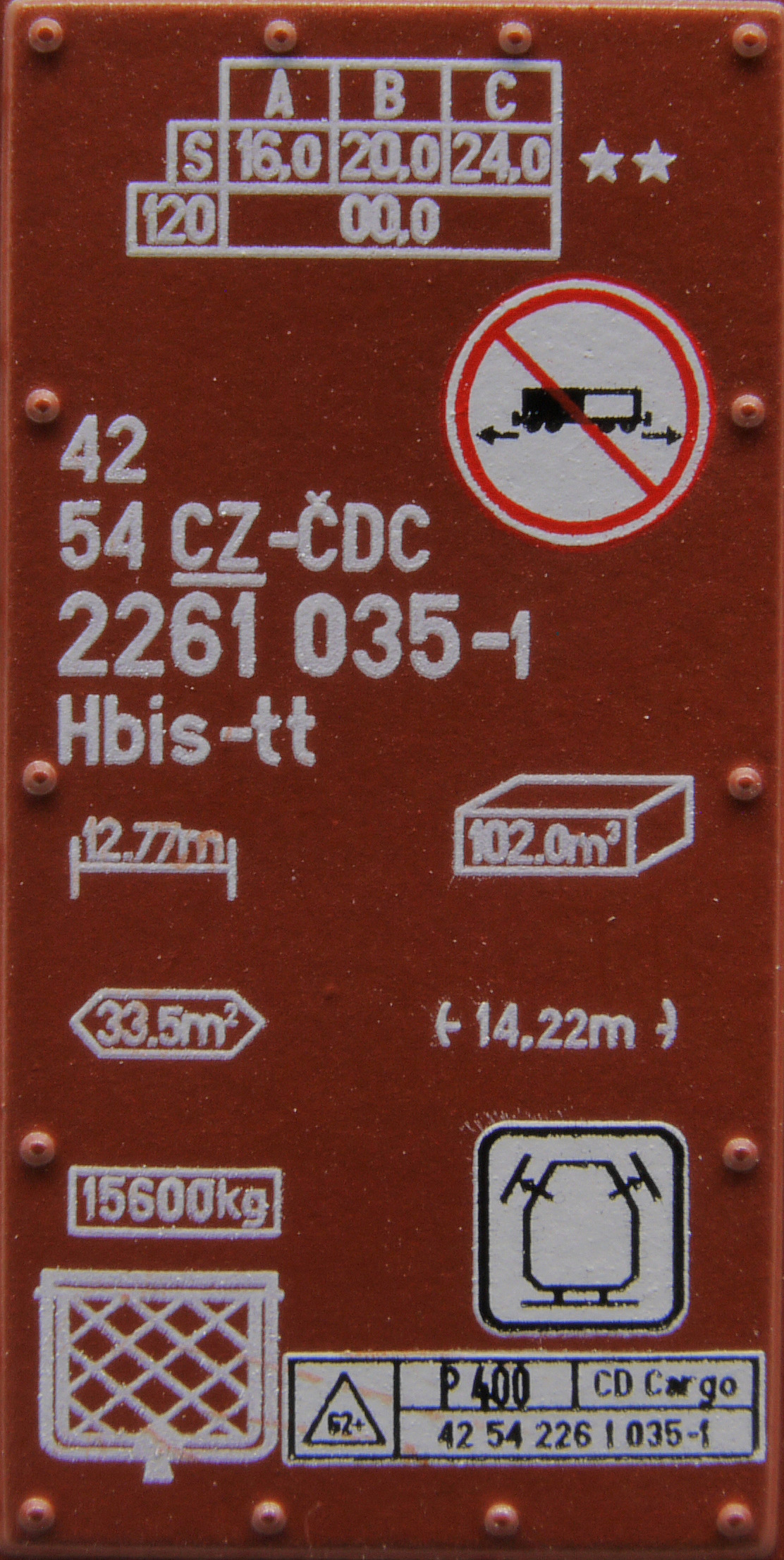 měřítko 1:120 - rozchod kolejí 12 mm kinematika krátkého spřáhla (KKK) podle normy NEM 358 117 mm - celková délka modelu přes nárazníky