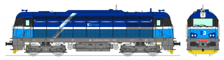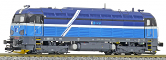 | dieselová lokomotiva v barevném schematu „ČD Cargo“ |