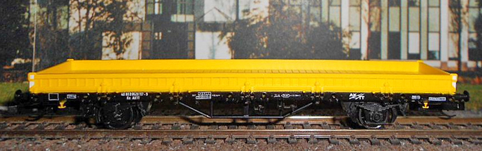 | • Ks | - | plošinový vůz dvounápravový běžné stavby se sklopnými nízkými stěnami a s krátkými klanicemi |
