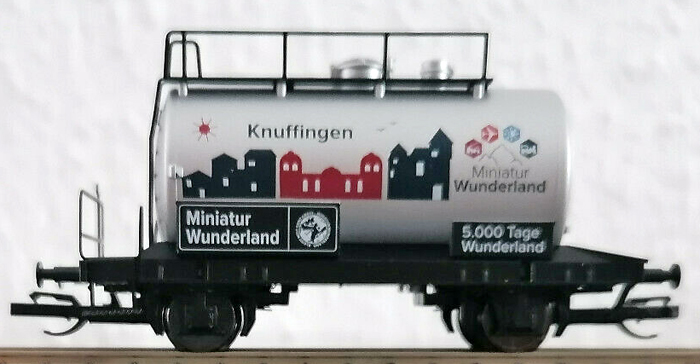 | kotlový vůz stříbrný s reklamním potiskem „5000 Tage Wunderland - Knuffingen” |