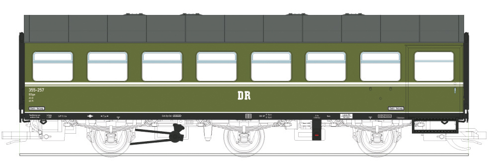 rekonstruovaný osobní vůz zelený s šedou střechou 2. tř.