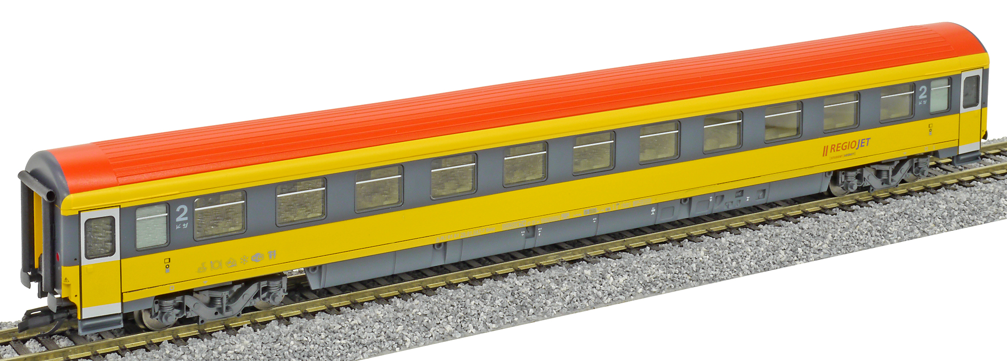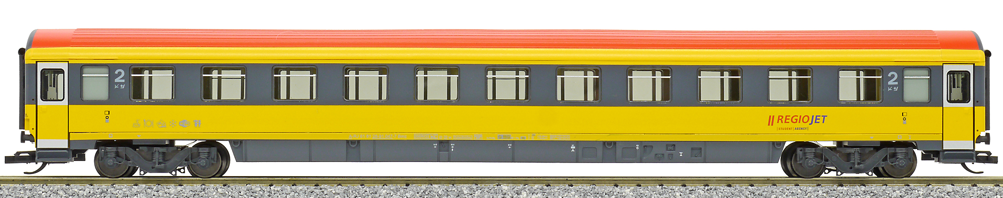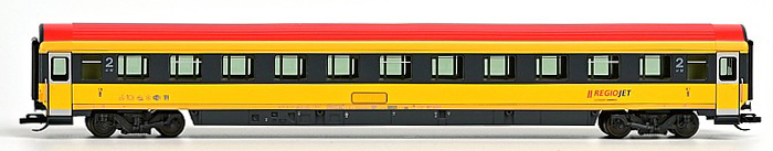 | rychlíkový vůz v barvách „RegioJet“ 2. tř. |
