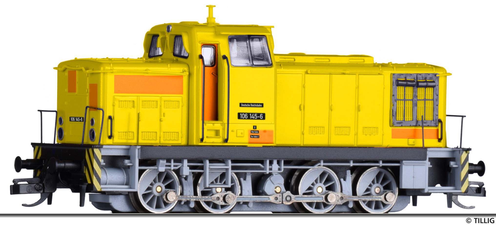 | dieselová lokomotiva žlutá s oranžovými záplatami |