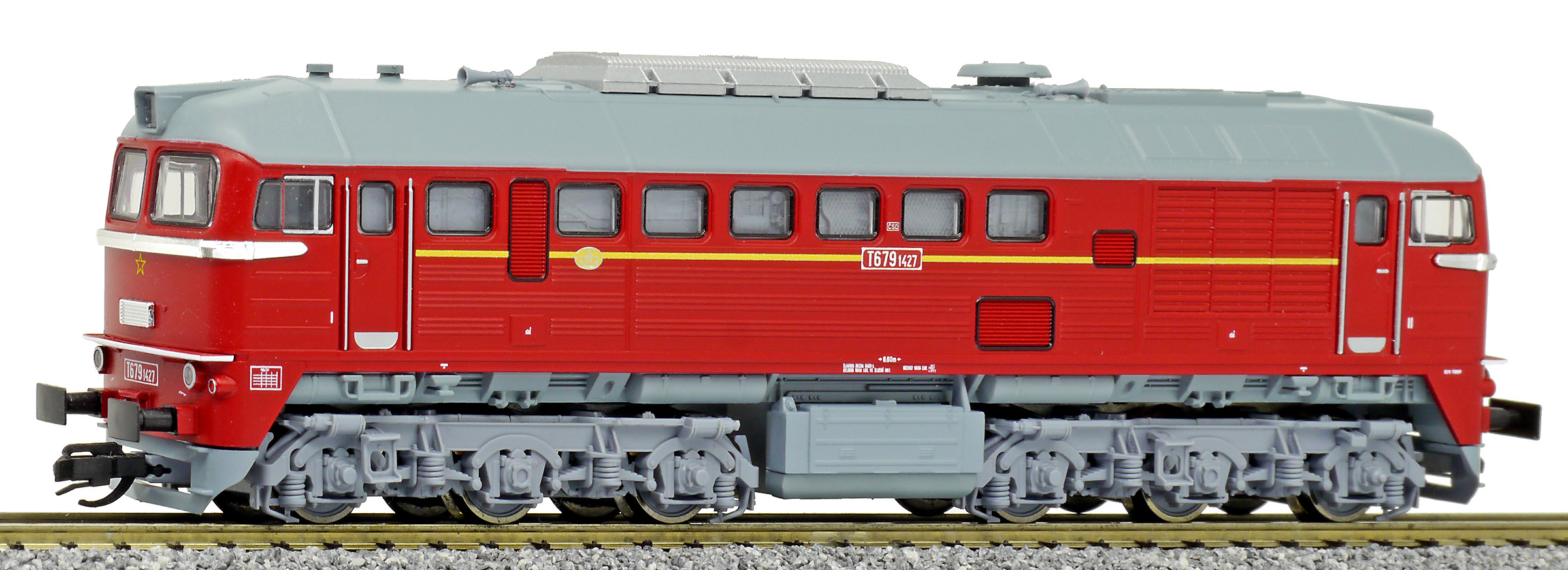 Popis   dieselová lokomotiva červená, světle šedá střecha a šedý pojezd