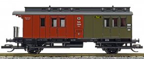| zavazadlový vůz s poštovním oddílem červený-tmavě zelený s černou střechou |