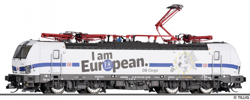 | elektrická lokomotiva s reklamním potiskem „I am European“ |