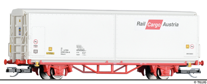 | nákladní vůz s posuvnými bočnicemi bílý s logem „RailCargoAustria“ |
