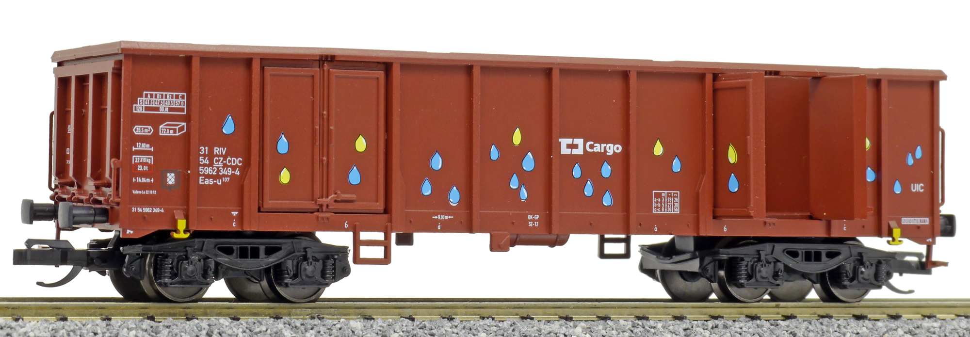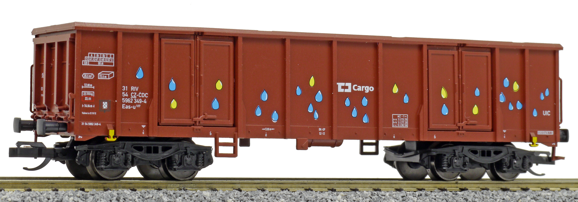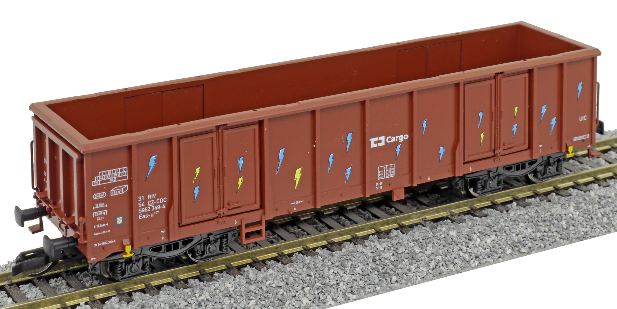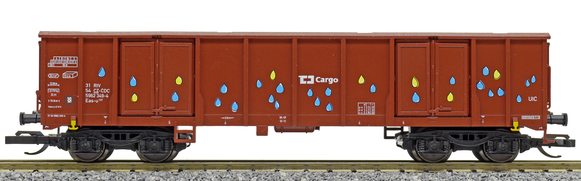 měřítko 1:120 - rozchod kolejí 12 mm kinematika krátkého spřáhla (KKK) podle normy NEM 358 117 mm - celková délka modelu přes nárazníky 4 - celkový počet náprav nebo rozložení náprav 130 g - hmotnost brutto - model včetně prodejního obalu 27 g - hmotnost netto - pouze model