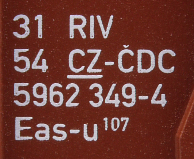 | • 31 54 5962 349-4 | → | nákladní, s podvozky, pevný rozchod, ve vlastnictví železniční správy, RIV, PPV |