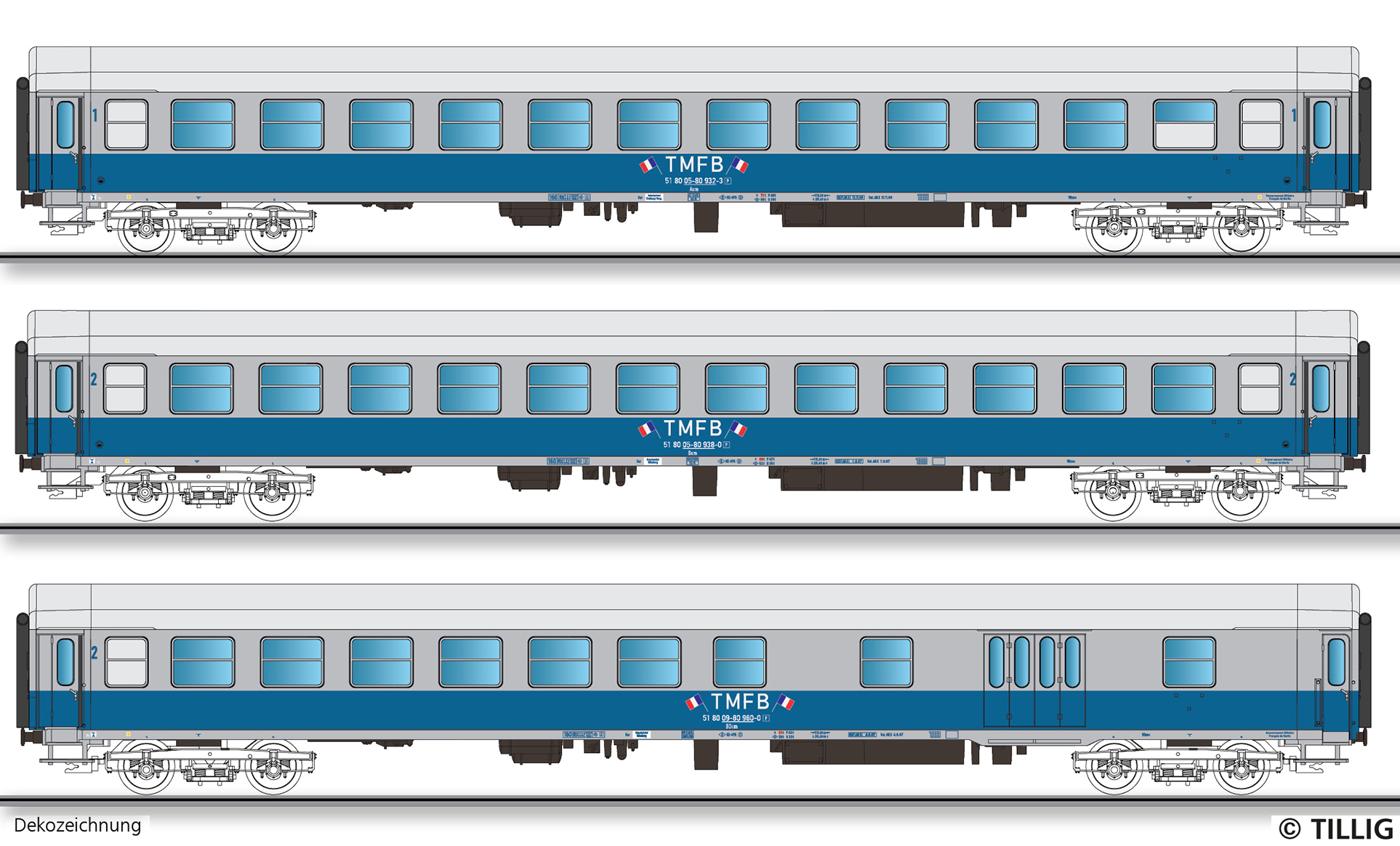 Tillig set osobních vozů „Train Militaire Francaise de Berlin“ - 01041  |