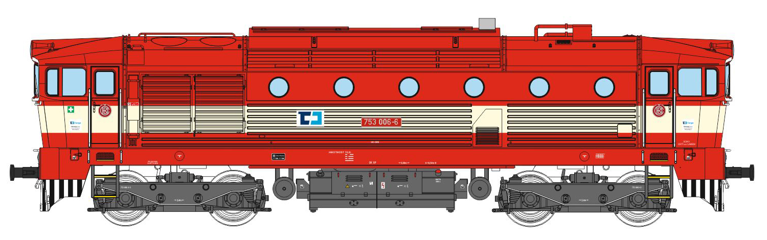 měřítko 1:120 - rozchod kolejí 12 mm osvětlení - 3 reflektory vpředu, 2 světla vzadu, přepínatelné podle směru jízdy 4 hnané nápravy 2 bandážované nápravy kinematika krátkého spřáhla (KKK) podle normy NEM 358 digitální rozhraní podle NEM 662 s konektorem Next18 setrvačník 138 mm - celková délka modelu přes nárazníky 4 - celkový počet náprav nebo rozložení náprav