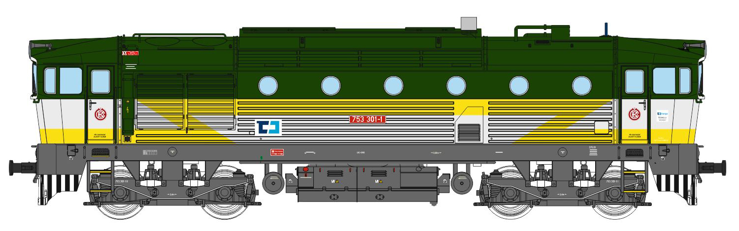 měřítko 1:120 - rozchod kolejí 12 mm osvětlení - 3 reflektory vpředu, 2 světla vzadu, přepínatelné podle směru jízdy 4 hnané nápravy 2 bandážované nápravy kinematika krátkého spřáhla (KKK) podle normy NEM 358 digitální rozhraní podle NEM 662 s konektorem Next18 setrvačník 138 mm - celková délka modelu přes nárazníky 4 - celkový počet náprav nebo rozložení náprav