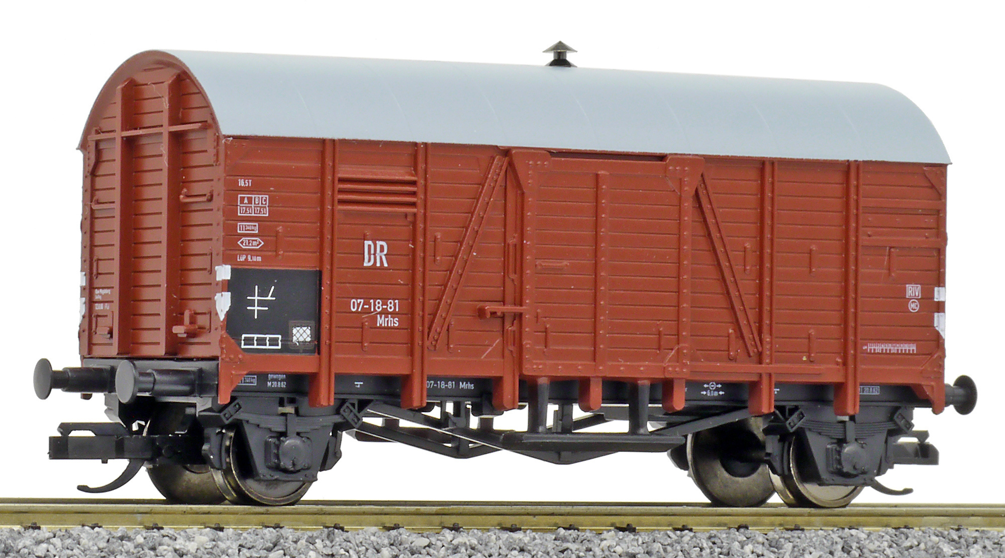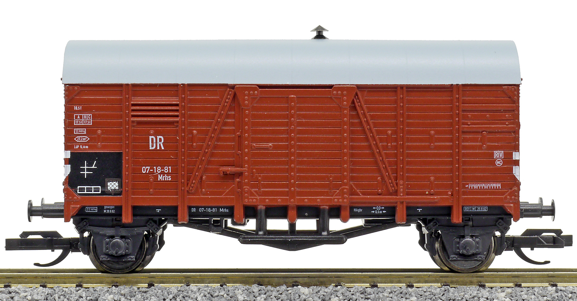 krytý nákladní vůz červenohnedý s šedou střechou