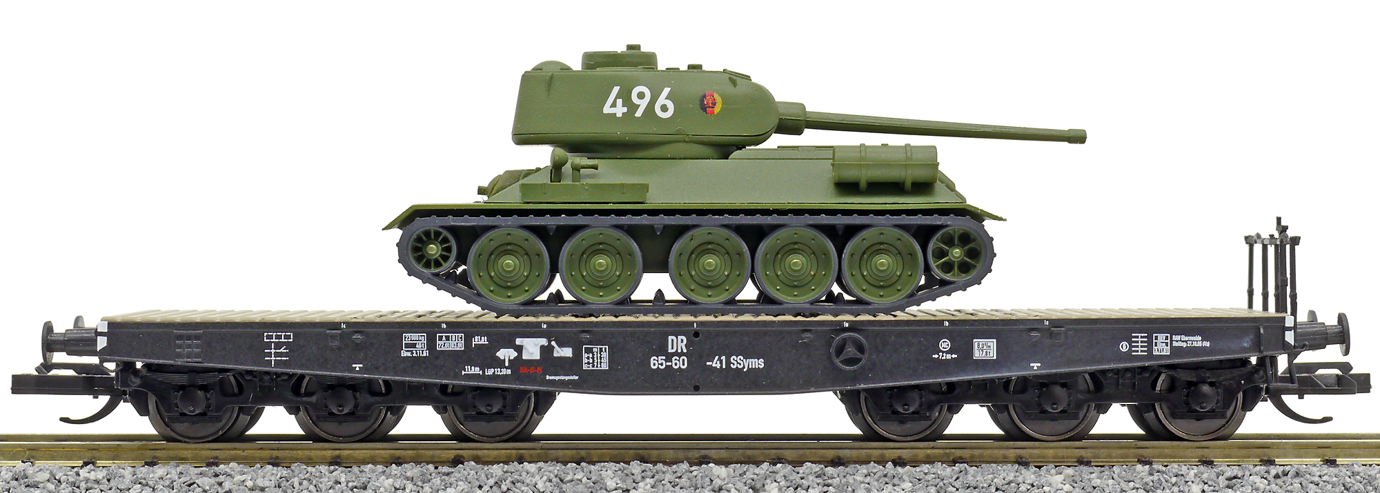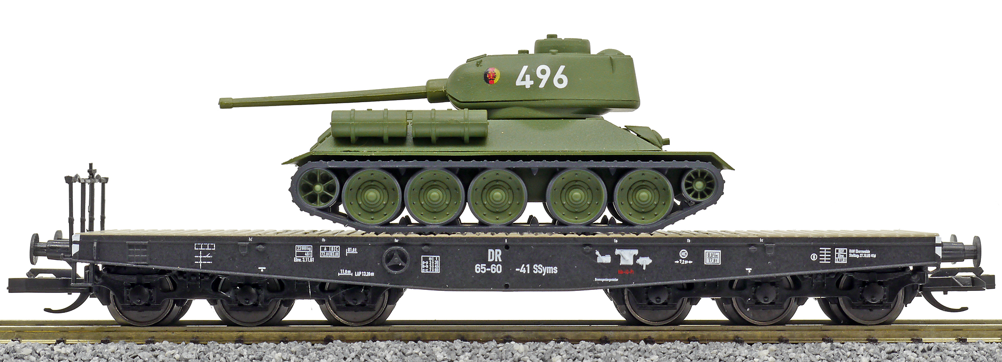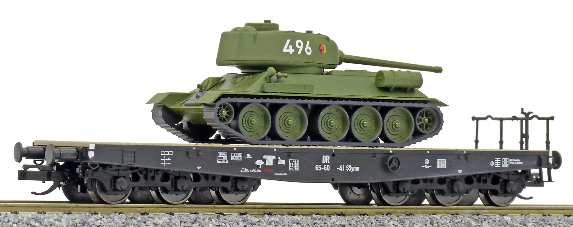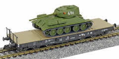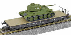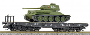 plošinový nákladní vůz černý s nákladem tanku T38/85