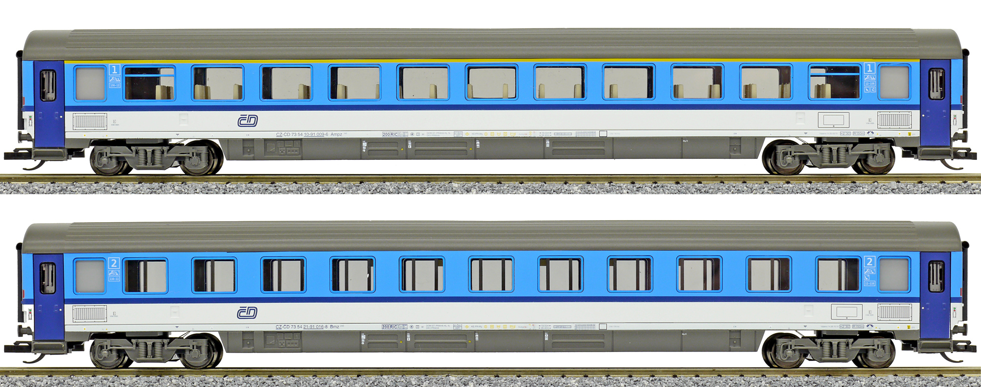 | set dvou rychlíkových vozů v barevném schematu „Najbrt“ |