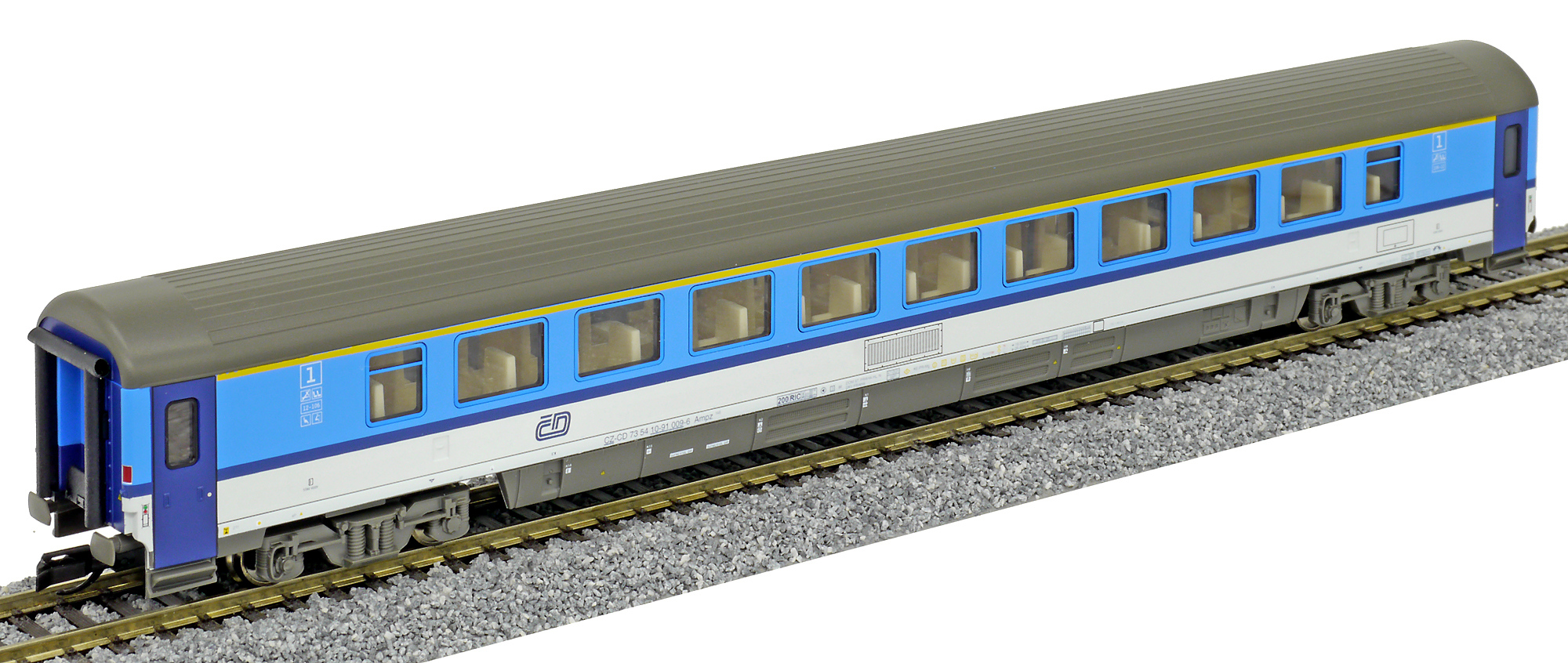 | rychlíkový vůz v barevném schematu „Najbrt“ 1. tř. |