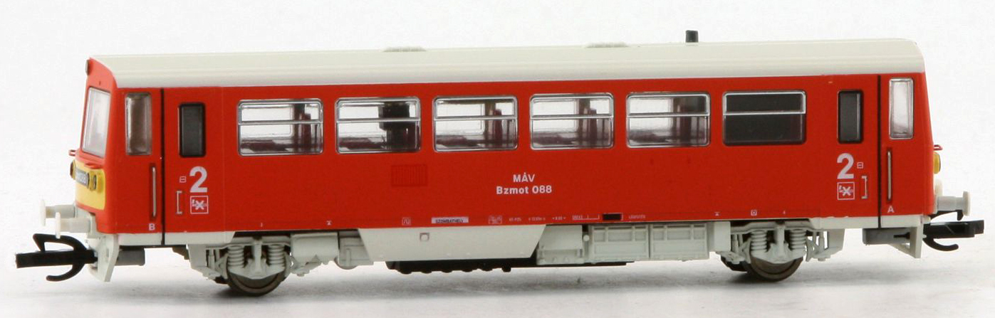 Popis   motorový vůz červený s šedou střechou a pojezdem