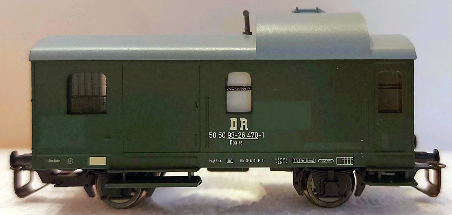 | zavazadlový vůz zelený s šedou střechou a se záplatami |