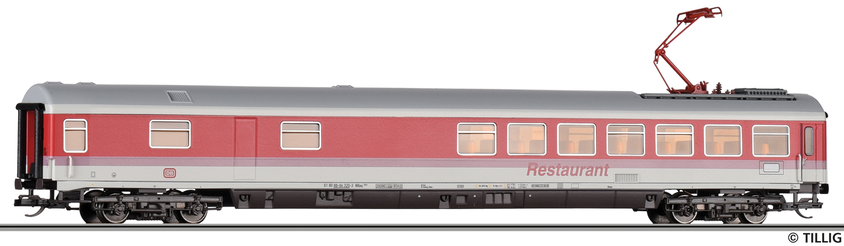 Popis   jídelní vůz v původním barevném schematu IC s polopantografem