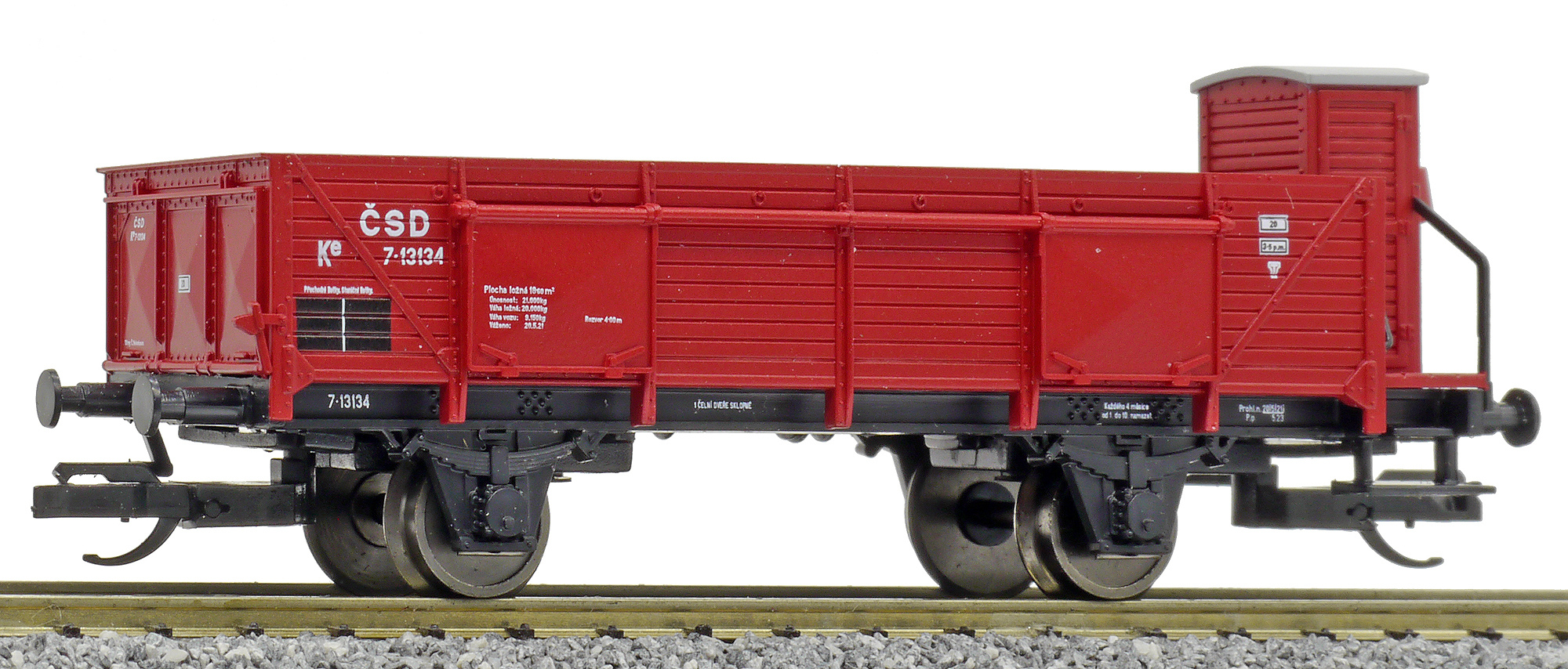 otevřený nákladní vůz červenohnědý s brzdařskou budkou