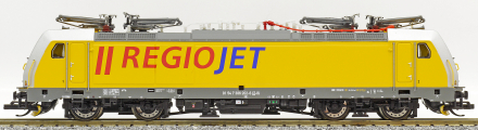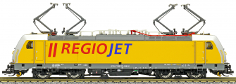 | elektrická lokomotiva v barevném schematu „RegioJet“ |