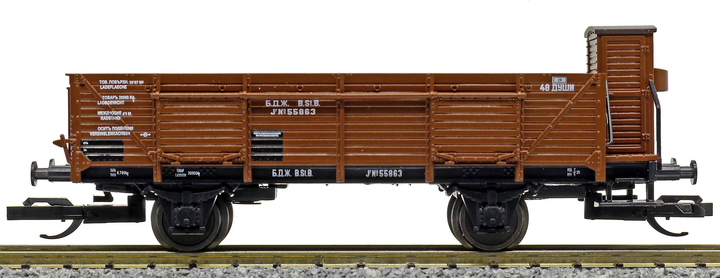 Popis   otevřený nákladní vůz červenohnědý s brzdařskou budkou