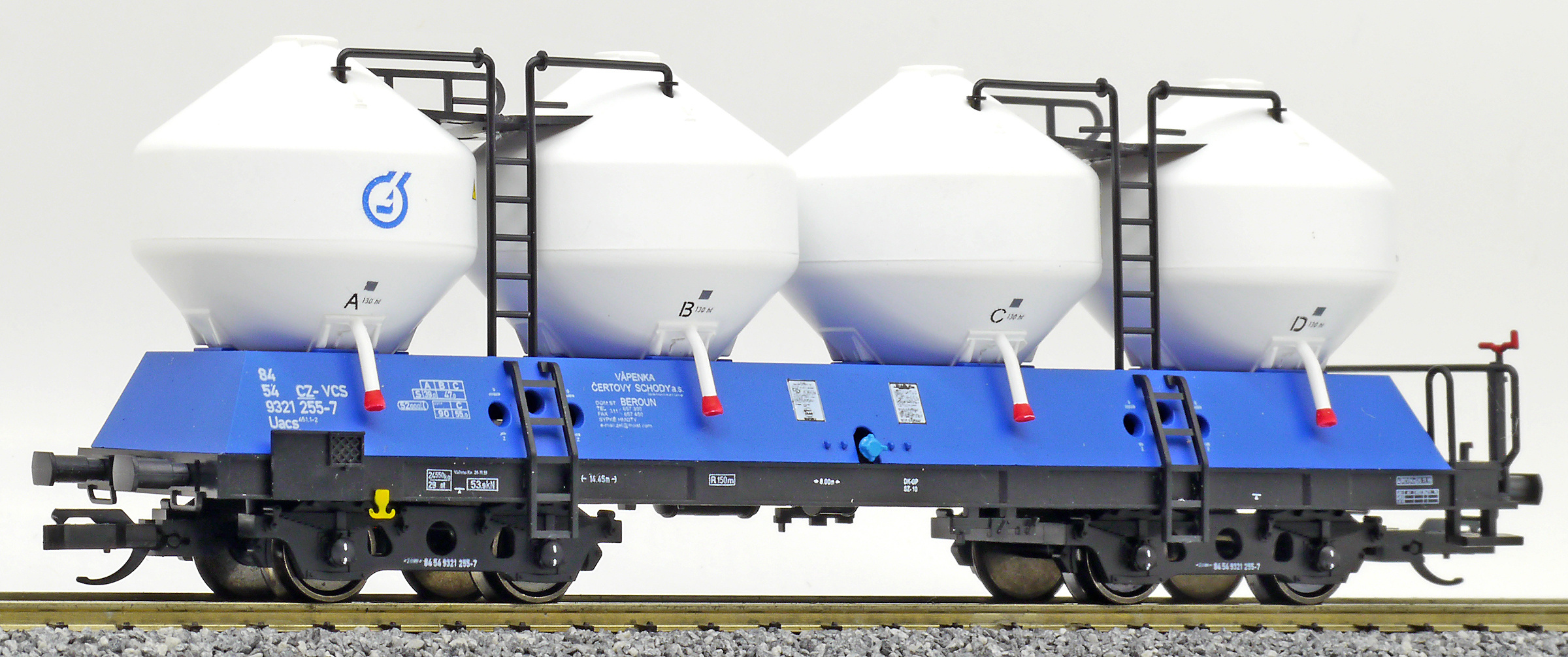 | nákladní samovýsypný vůz modrý s bílými nádobami „Vápenka Čertovy schody“ |