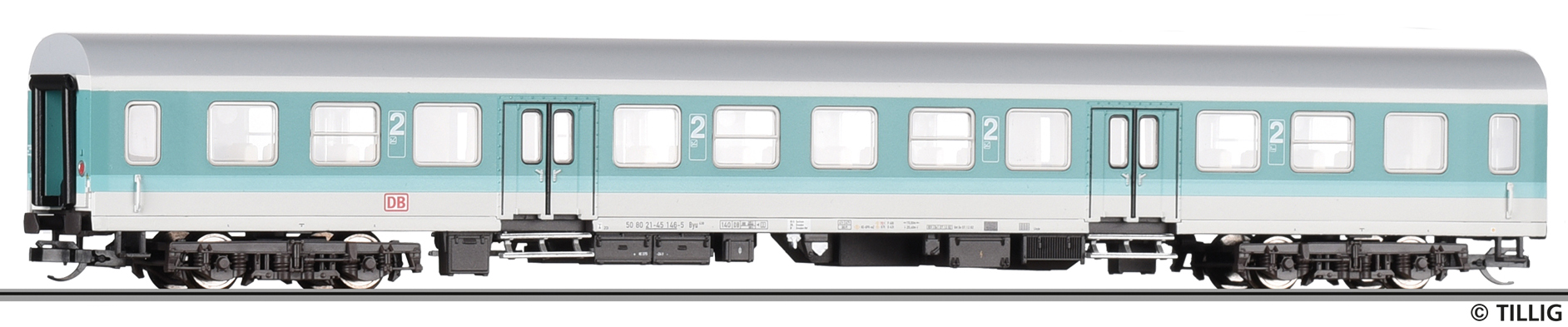 Popis   osobní vůz v barevném kombinaci tyrkysová-světle šedá 2. tř.