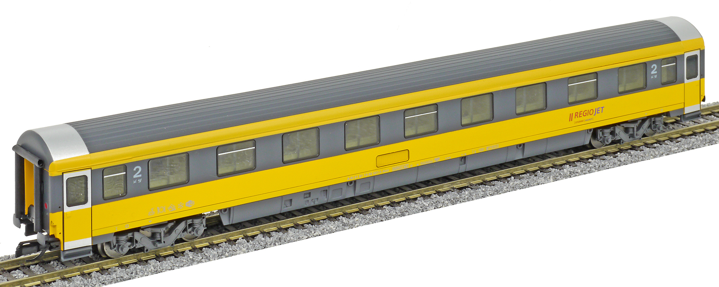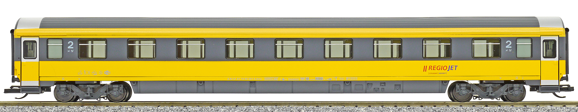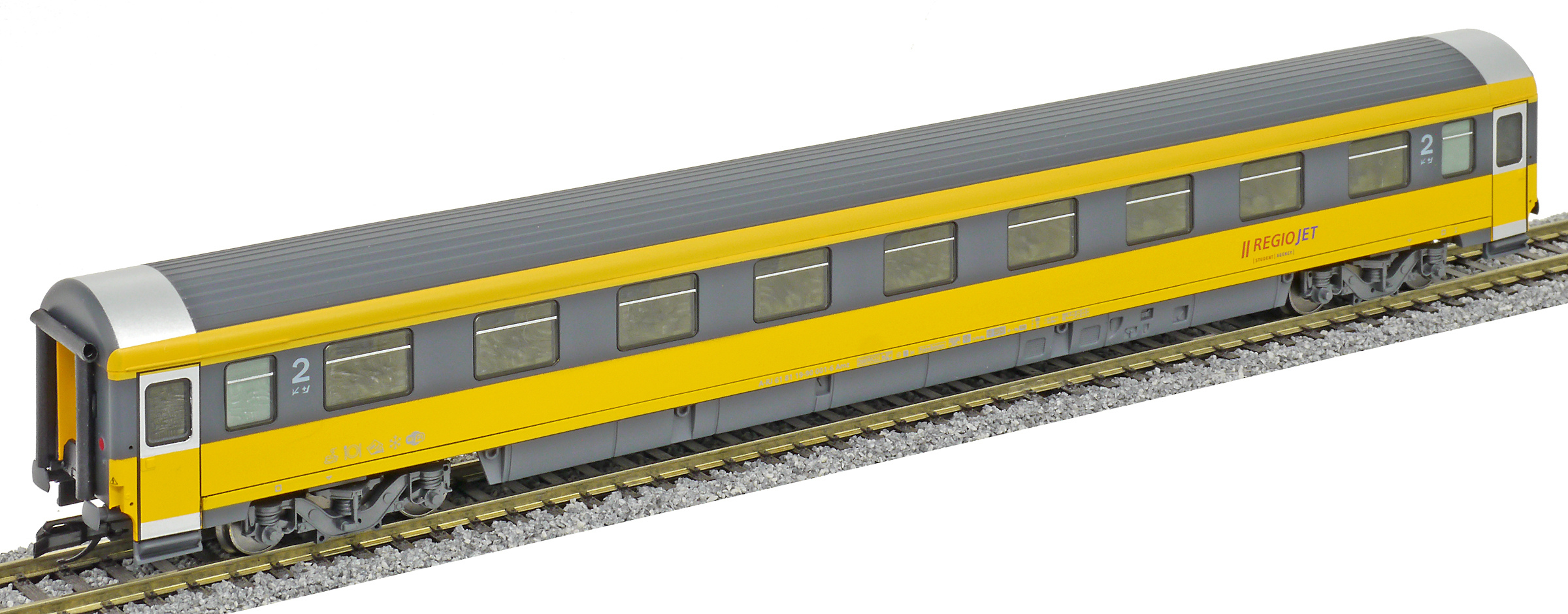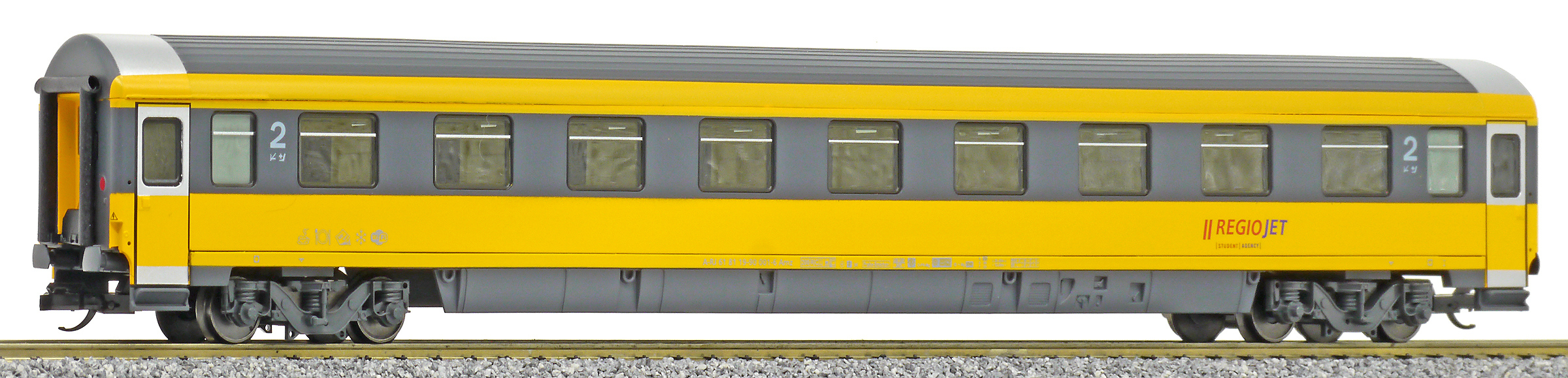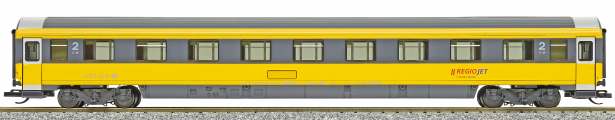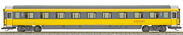 | rychlíkový vůz v barvách „RegioJet“ 2. tř. |