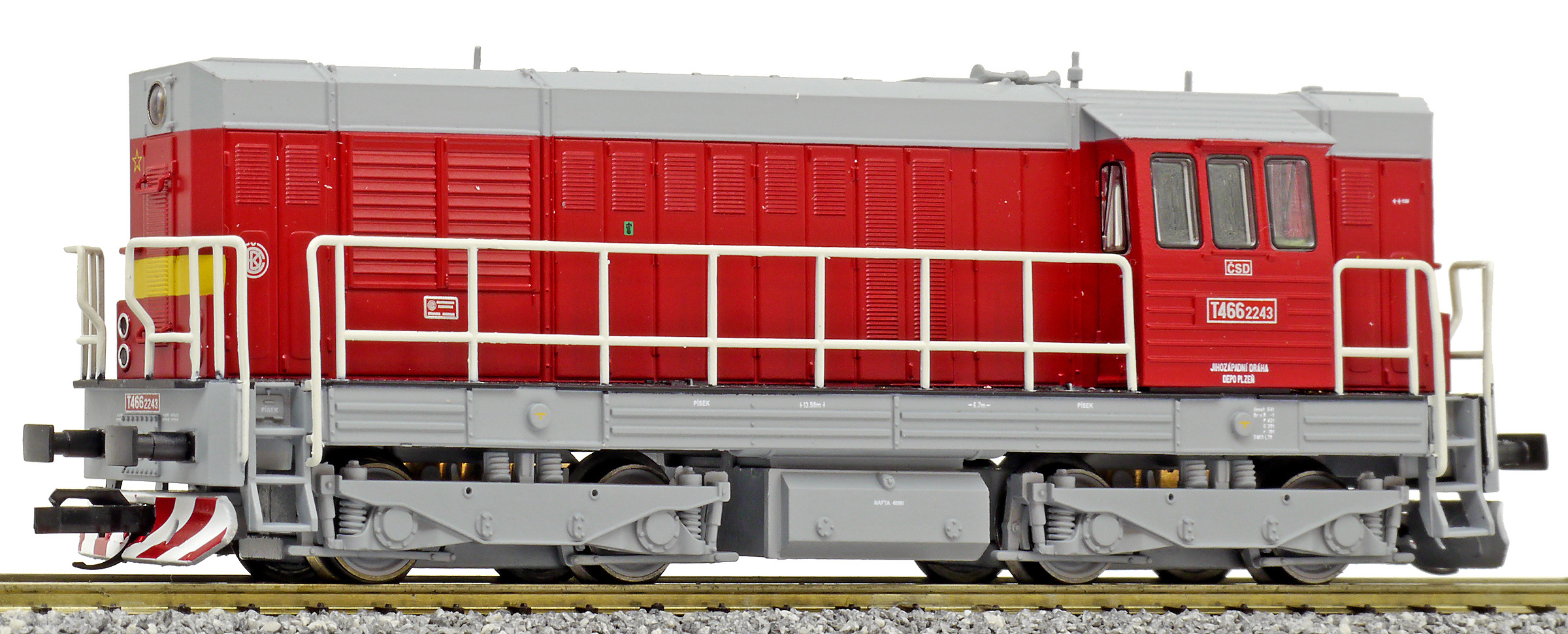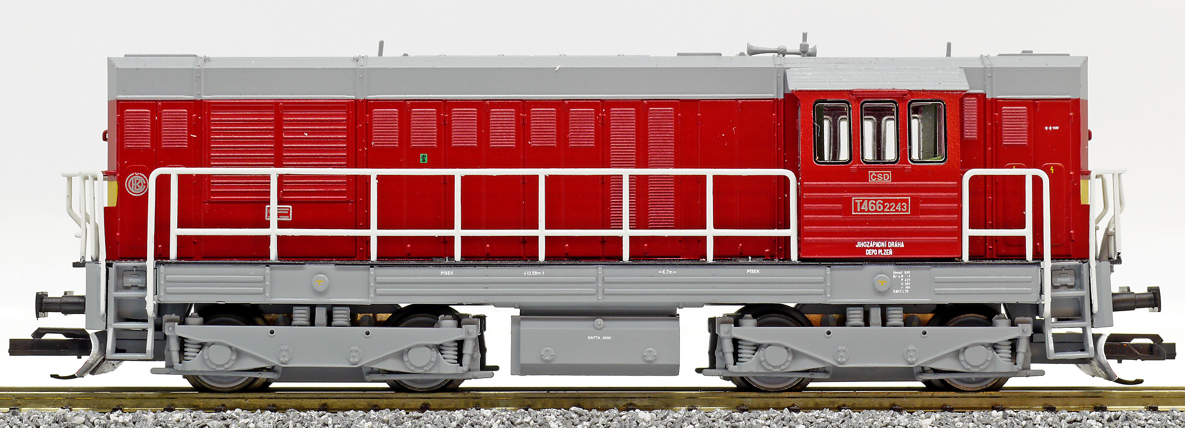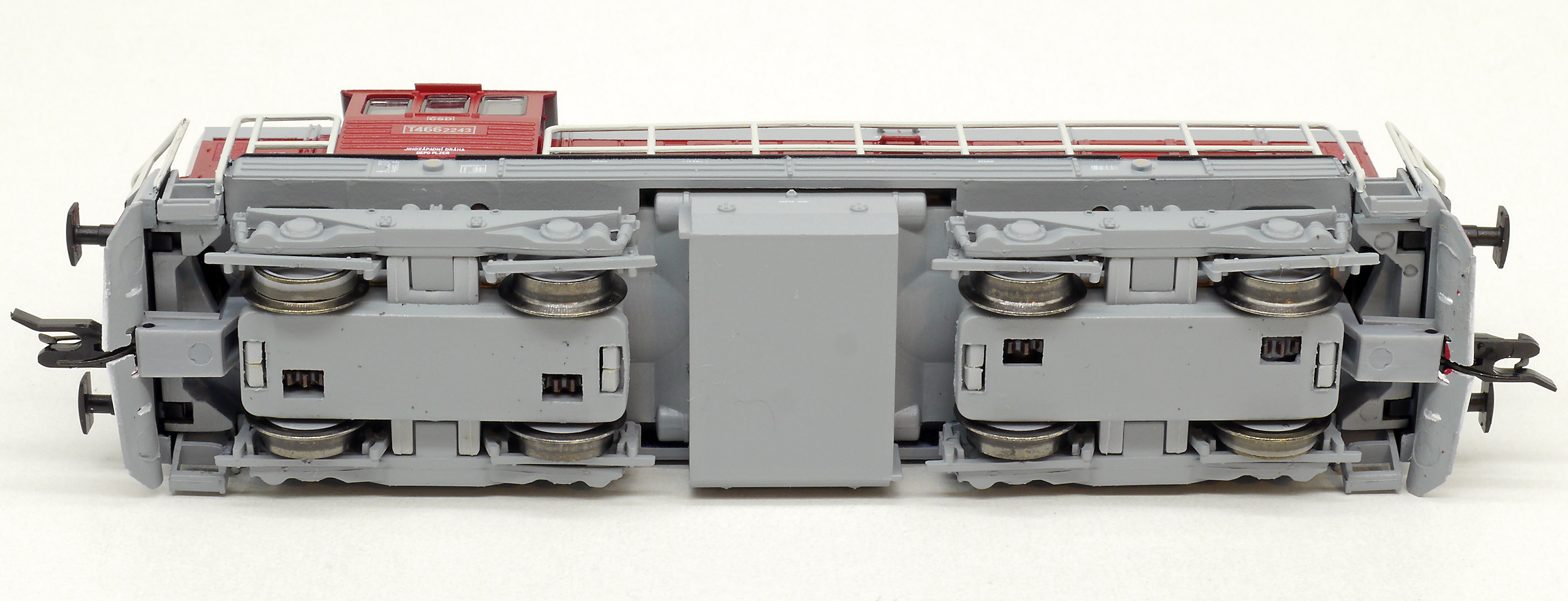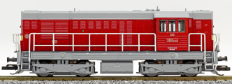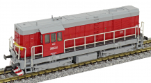 | dieselová lokomotiva červená-šedá střecha, rám a pojezd |