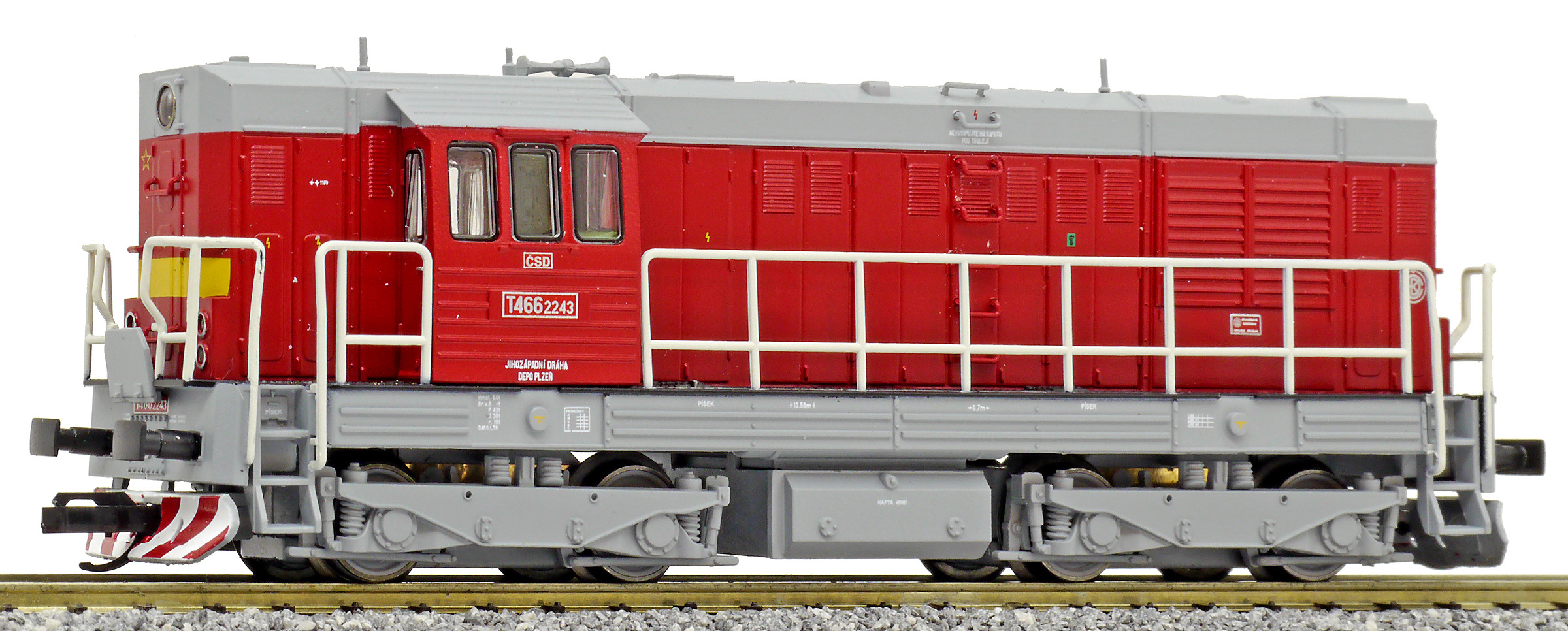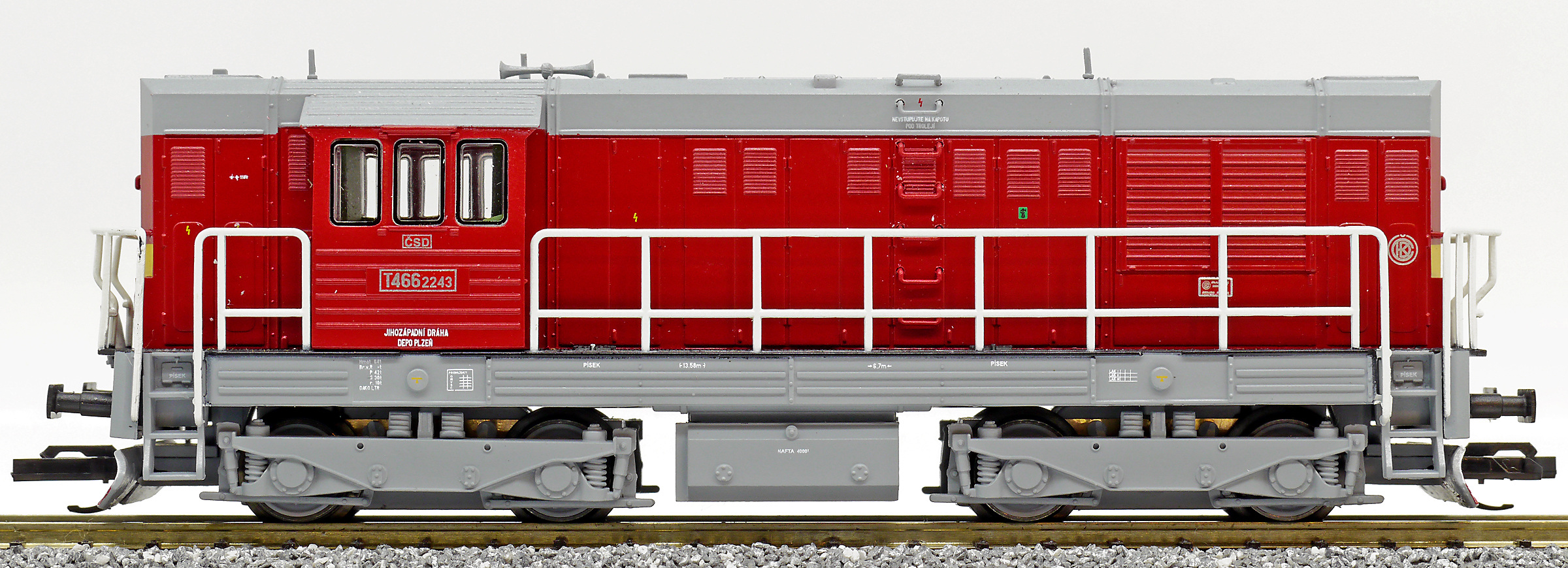 měřítko 1:120 - rozchod kolejí 12 mm osvětlení - 3 reflektory vpředu, 2 světla vzadu, přepínatelné podle směru jízdy 4 hnané nápravy 2 bandážované nápravy kinematika krátkého spřáhla (KKK) podle normy NEM 358 digitální rozhraní podle NEM 662 s konektorem Next18 113 mm - celková délka modelu přes nárazníky 4 - celkový počet náprav nebo rozložení náprav 240 g - hmotnost brutto - model včetně prodejního obalu 132 g - hmotnost netto - pouze model